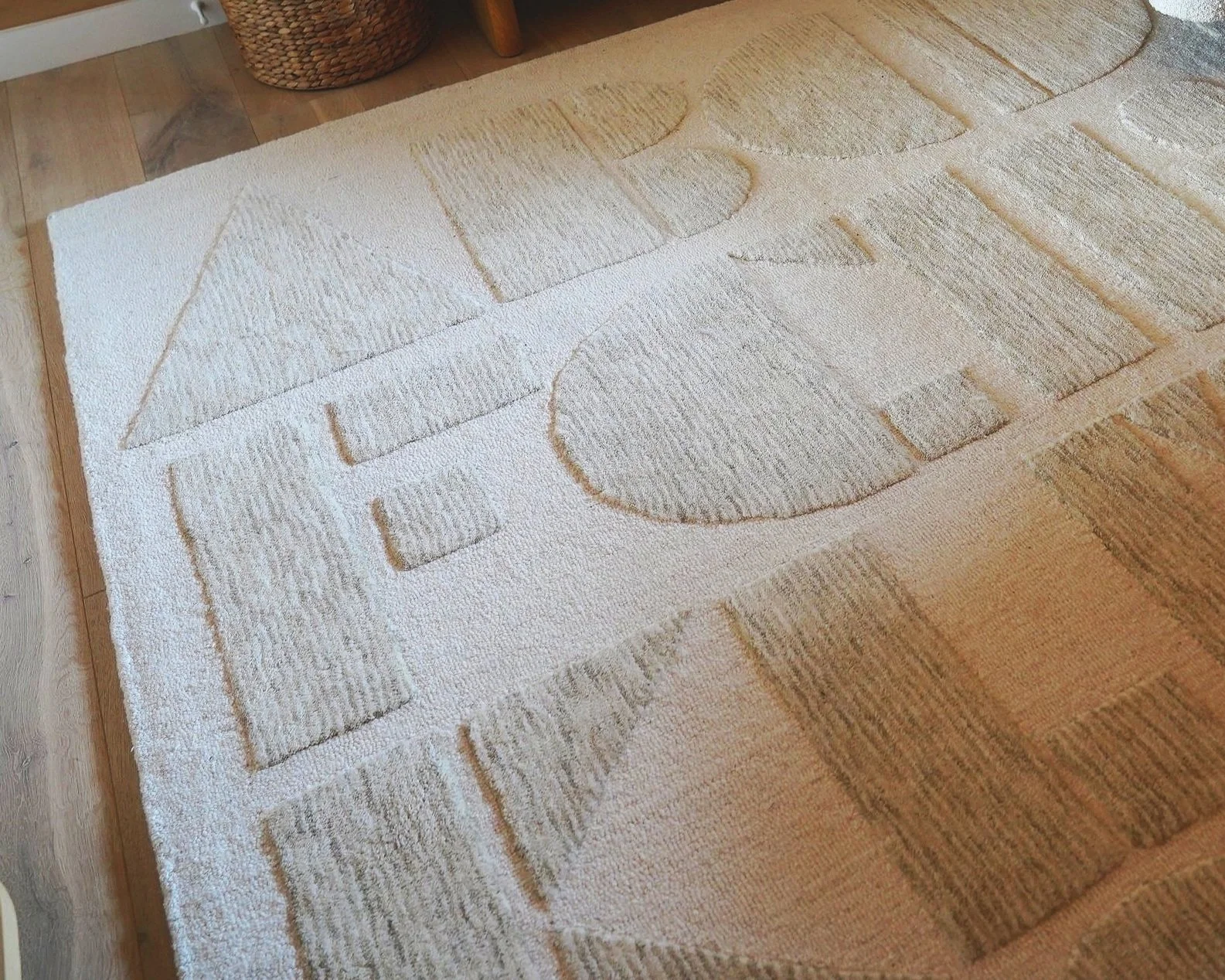 Modern Alphabet Calm Beige Kids Wool Area Rug